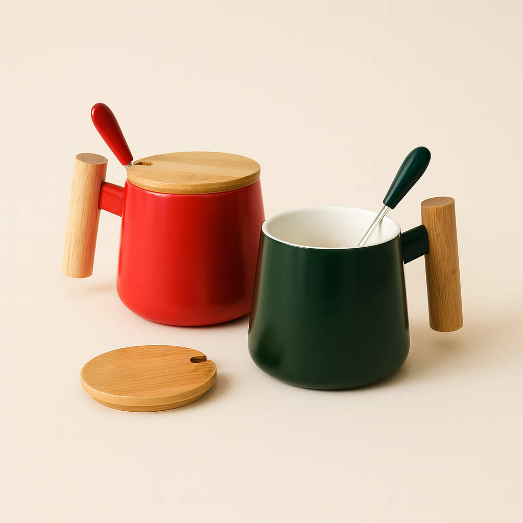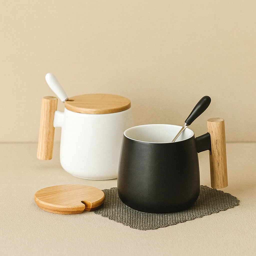 #7812 Ceramic Mug with Wooden Lid and Spoon